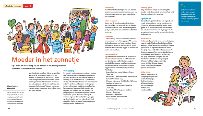 Voor Praxisbulletin schreef ik het artikel ‘Moeder in het zonnetje’. In dit artikel krijg je tips om Moederdag op een andere manier te vieren. Nodig de moeders uit op school en heb een gezellige dag!