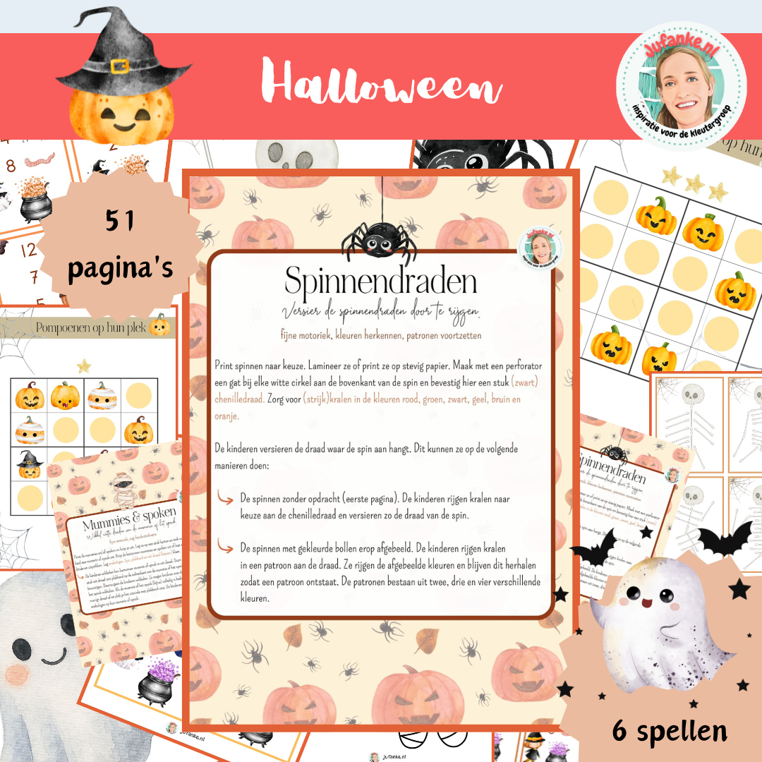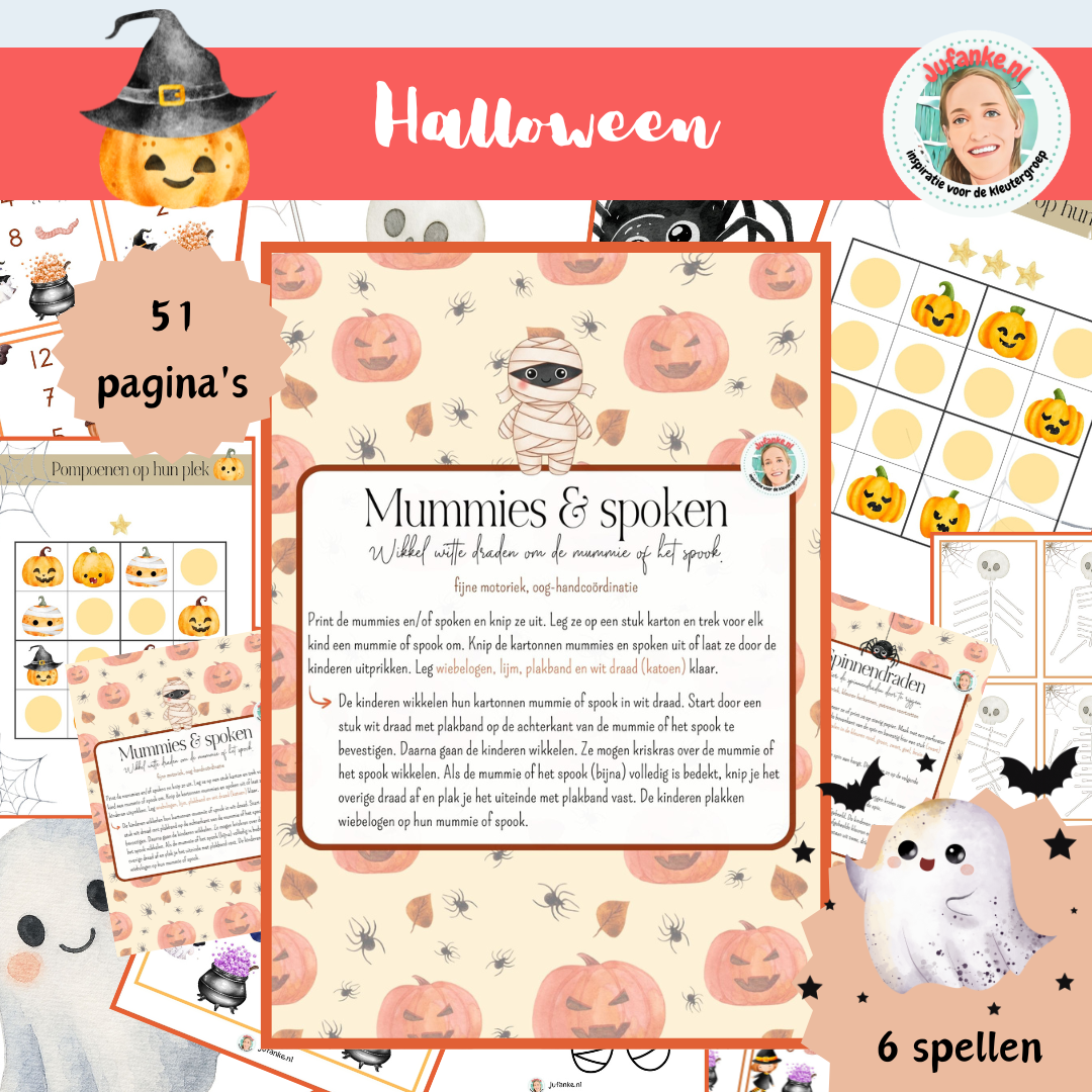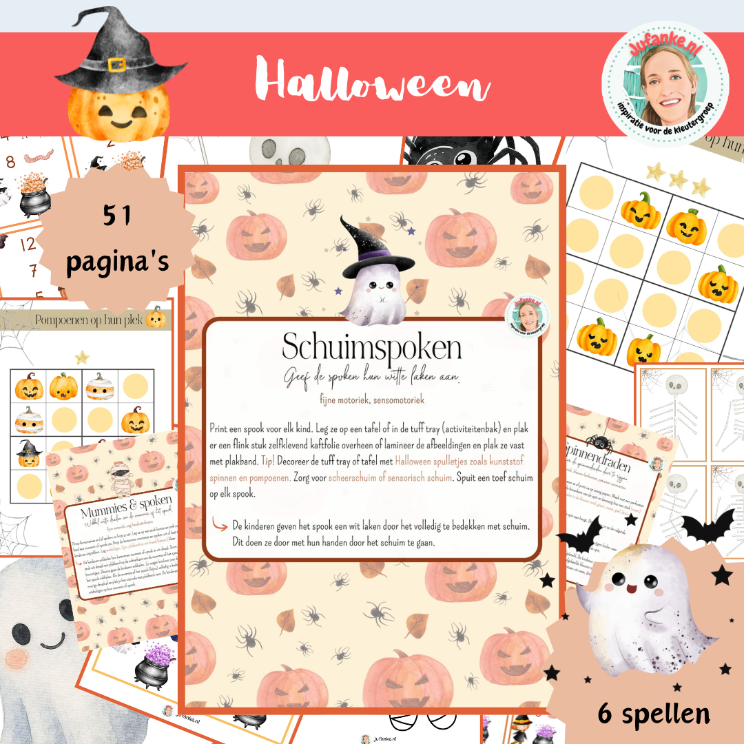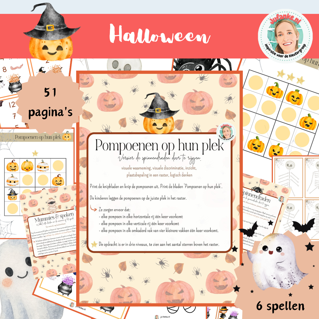 Deze digitale download van 51 pagina’s bevat 6 activiteiten / spellen voor kleuters en peuters bij de thema’s Halloween & griezelen om in te zetten tijdens de spelinloop, de speel-/werktijd, het werken met groepjes kinderen, specifieke begeleiding en meer.