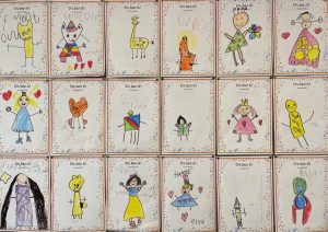 Daarna tekenen de oudste kleuters wat moois op de carnavalswagen. Poppen, dieren, zichzelf in carnavalskleding…