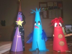 Zet de gemaakte figuren in een polonaise of optocht neer op bijv. een kast.