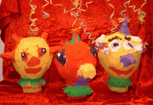 De clowns vind je in de minibundel ‘carnaval’. Je kunt ze natuurlijk ook zelf maken.