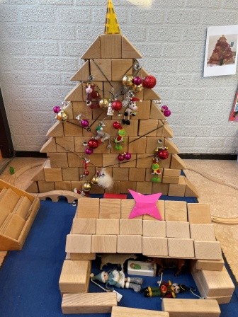 Laat de kinderen met blokken of Kapla kerstbomen maken en deze versieren met loose parts, kerststallen bouwen en meer wat met Kerstmis te maken heeft.
