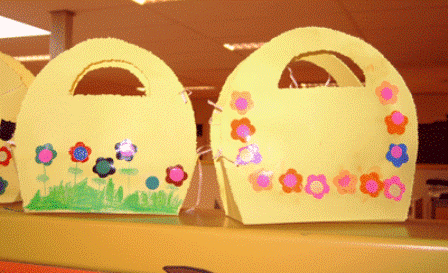 Vul een mandje met wat spullen die met Pasen (of lente) te maken hebben.