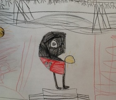 Geef de kinderen een dunne, zwarte stift en laat hen zichzelf als voetballer tekenen. De tekening wordt ingekleurd met kleurpotlood en het shirt wordt oranje.